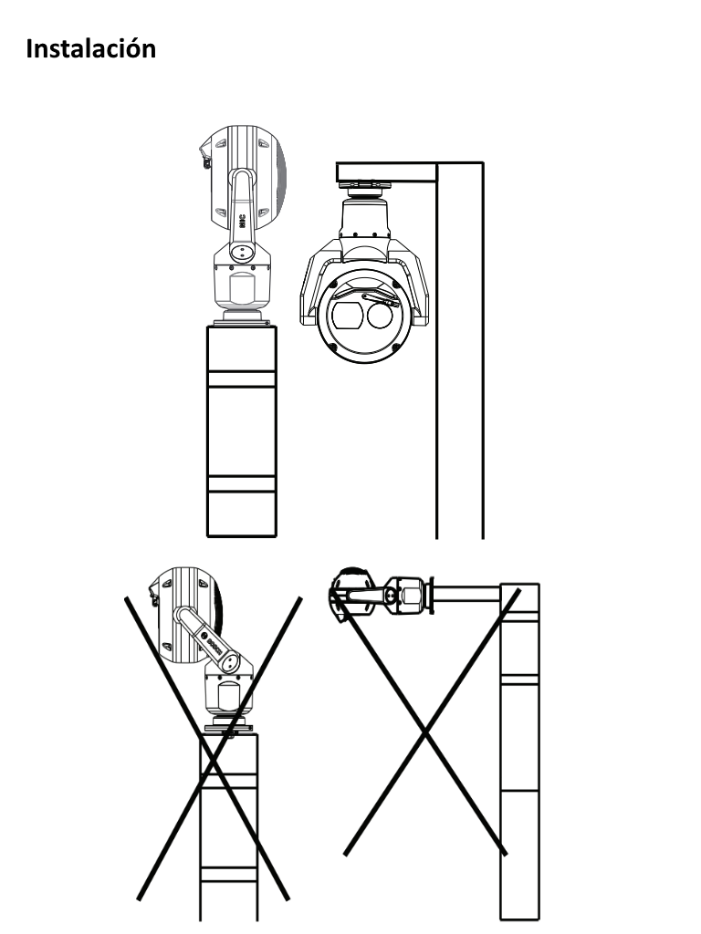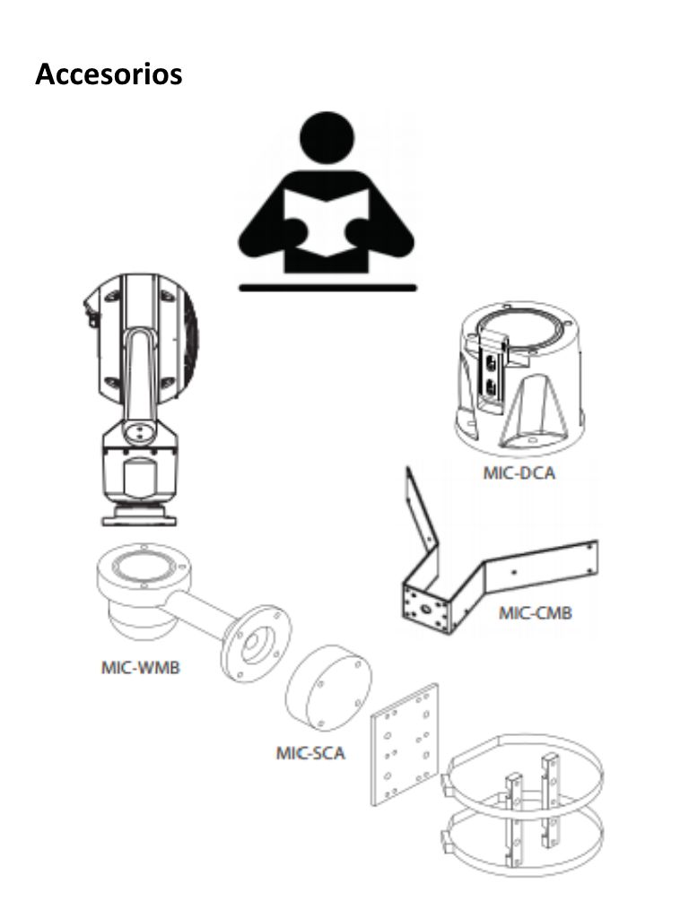 - IP66 (rociado dirigido) instalada sobre un soporte para pared MIC-DCA o MIC.