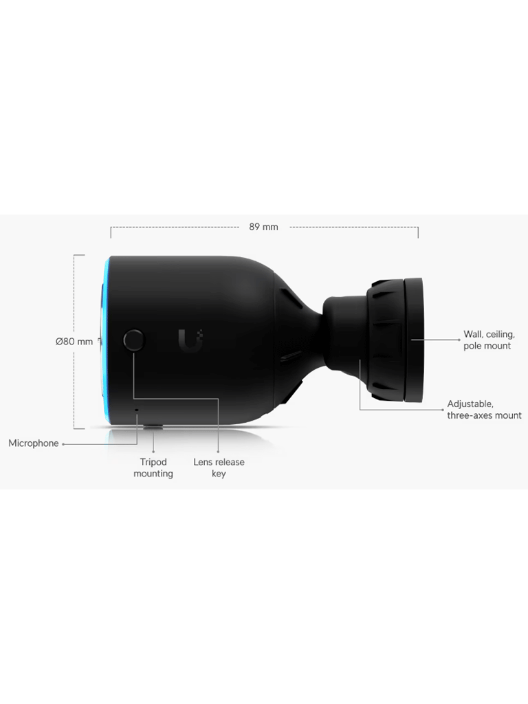 Camara IP bullet para exterior 8 MP 4K Lente fijo 17mm de apertura amplia Microfono y Bocina integrados Deteccion avanzada IA: Movimiento Personas Vehiculos LPR – UVC-AI-DSLR