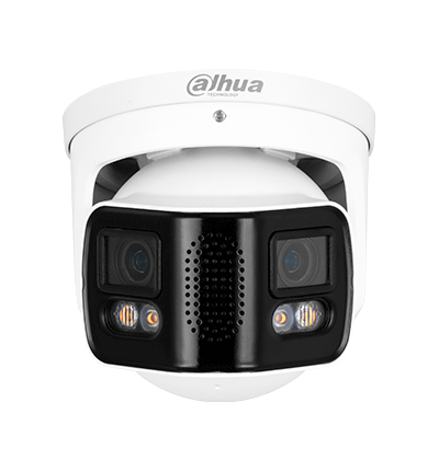 Cámara IP Full Color con visión de 180° y doble lente de 4 MP Ofrece protección perimetral mapa de calor conteo de personas y LED de 40m Cuenta con multivisión WizMind audio bidireccional ePoE H.265 e IP67 – DH-IPC-PDW5849-A180-E2-ASTE
