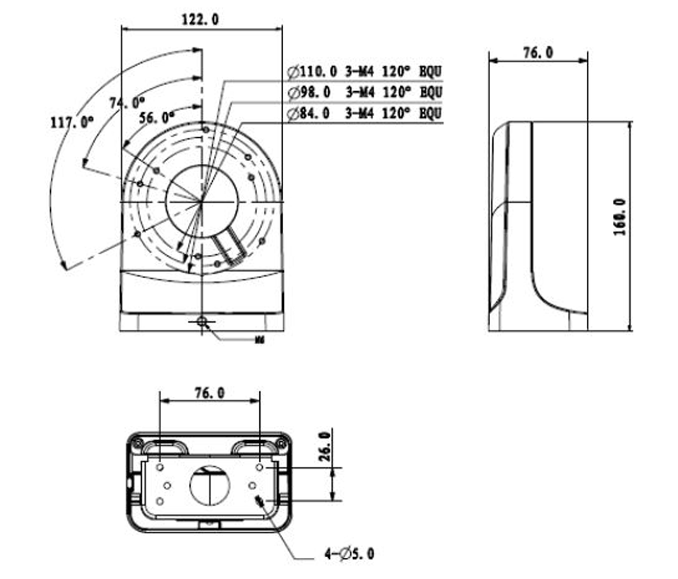 EPFB203W es un brazo de pared para cámaras domo de la marca Dahua, el brazo está construido de un material de aluminio el cual le permite soportar hasta 1Kg de peso, sus medidas: 160 x 122 x 76mm.