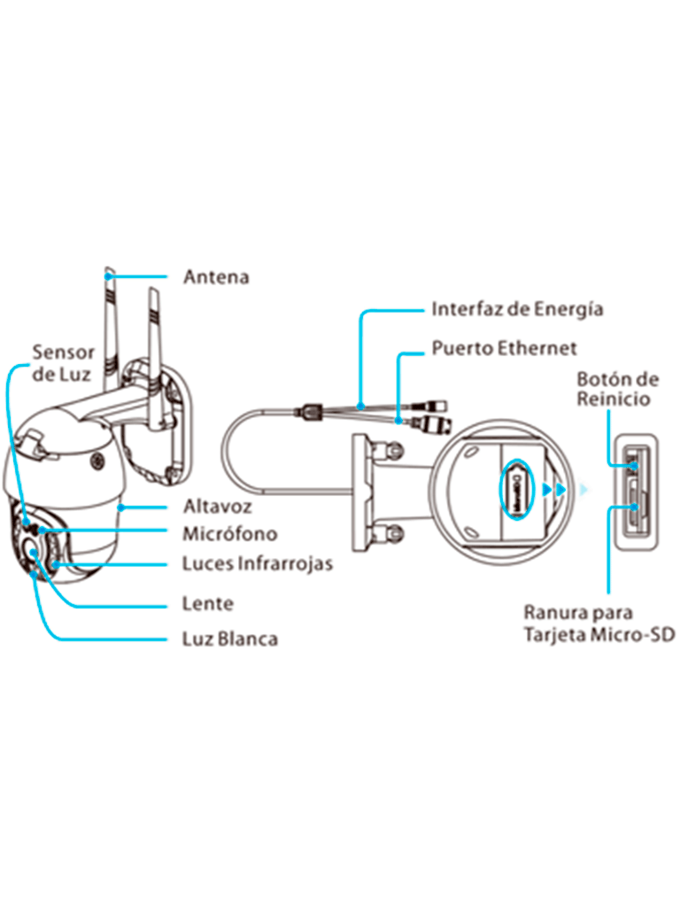 Cámara PT Wi Fi de 3MP con lente de 3.6mm altavoz y micrófono integrados Ofrece audio bidireccional y alcance IR de 20m Utiliza compresión de vídeo H.265 Compatible con almacenamiento local y en la nube Funciona con Alexa – NG-C4200