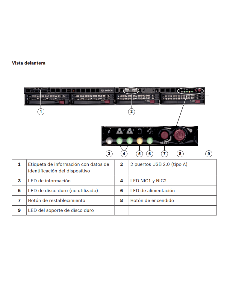 Bosch no se responsabiliza de pérdidas de datos, daños ni fallos del sistema de unidades que dispongan de discos duros que no haya suministrado Bosch. Bosch no puede proporcionar asistencia si se considera que los discos duros no suministrados por Bosch son la causa del problema. Para solucionar posibles problemas de hardware, Bosch requerirá la instalación de discos duros suministrados por Bosch.