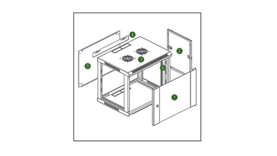 Gabinete de pared de 6 UR fijo con capacidad de carga de 60 Kg Dimensiones 60x45x37cm de acero – SA.6406.01