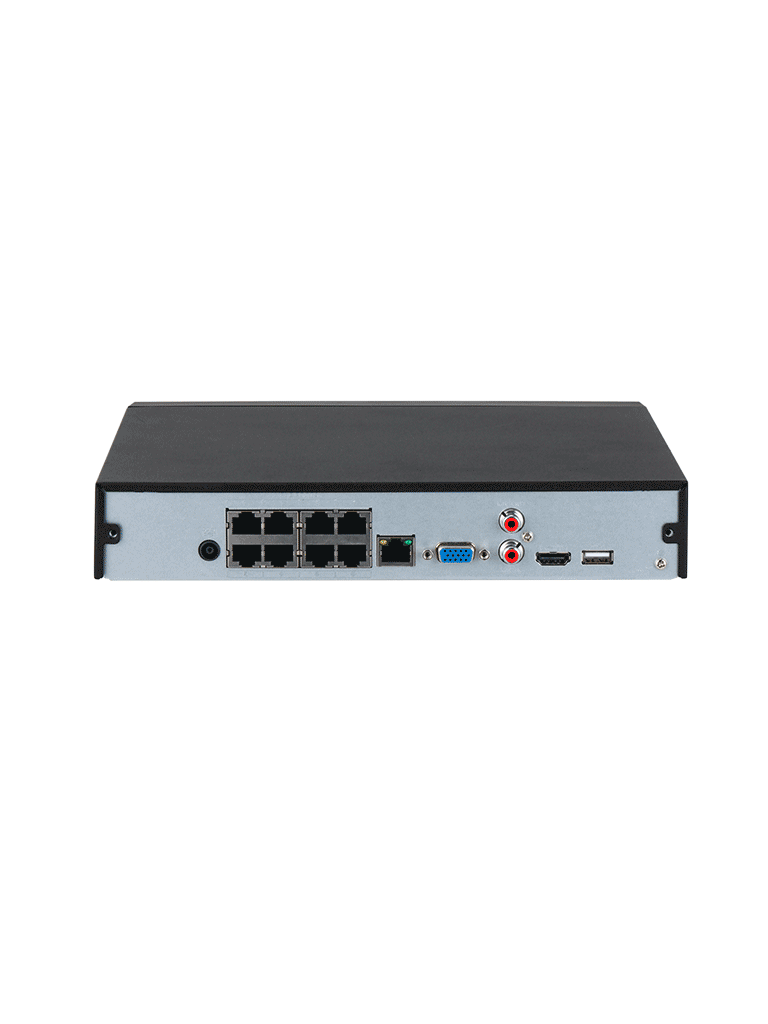 NVR de 8 MP 4k 8 canales IP 8 puertos PoE Rendimiento de 160 mbps H.265+ 1 Bahía para disco duro Soporta cámaras WizSense HDMI 4K & VGA – DHI-NVR4108HS-8P-4KS3