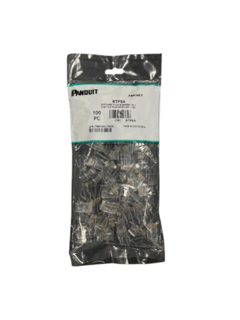 • 100 Piezas de RTPSA Conectores modulares TX6™ PLUS 23-24 AWG UTP con diseño de 8 posiciones y 8 hilos.